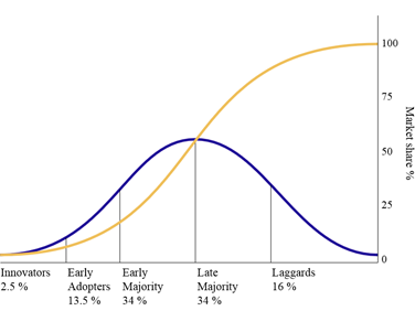 User adoption, based on Diffusion of Innovation precepts, follows this cycle, with relatively little uptake until the plateau is arrived at. The early majority will emerge during the Slope of Enlightenment and the Late Majority only when the plateau is arrived at. Laggards may need to be beaten with sticks or allowed to disappear through ‘natural wastage’ – you just can’t help some people.