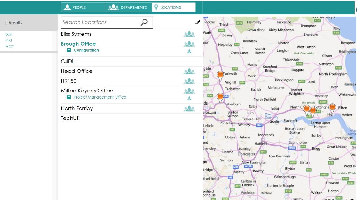 Even small organisations have this need – in my ~20 person company we identified 8 distinct locations, 15 functional teams. In larger organisations these run to dozens or hundreds. Small or large, knowing about the physical ‘shape’ of the organisation and how their colleagues are placed in that shape is an important part of the sense of community; it’s also handy when planning meetings or making travel plans.