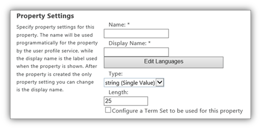 - If you selected string and want to associate the profile property with a managed metadata term set, select Configure a Term Set to be used for this property. Then select a term set from the list.