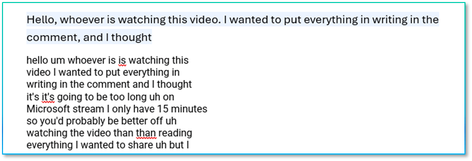 In this case the transcript was pretty ‘dirty’, so somewhat taxing to read and understand: