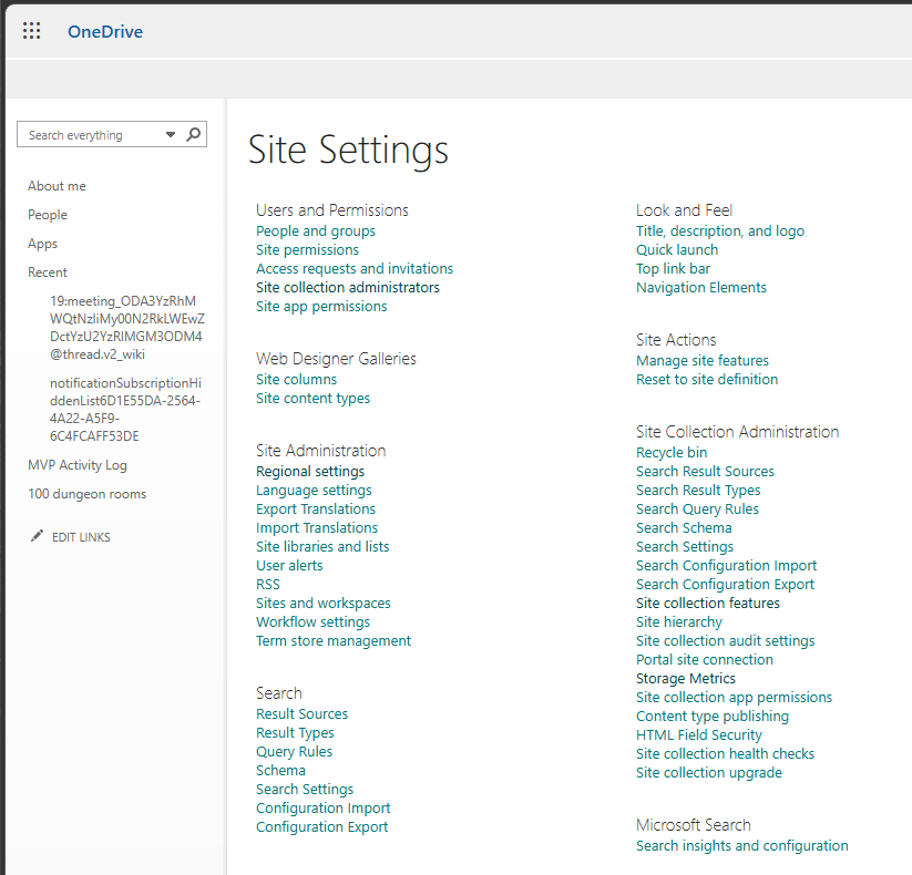 Open Storage metrics etc. You could even change the end of the URL to get into the full SharePoint settings page