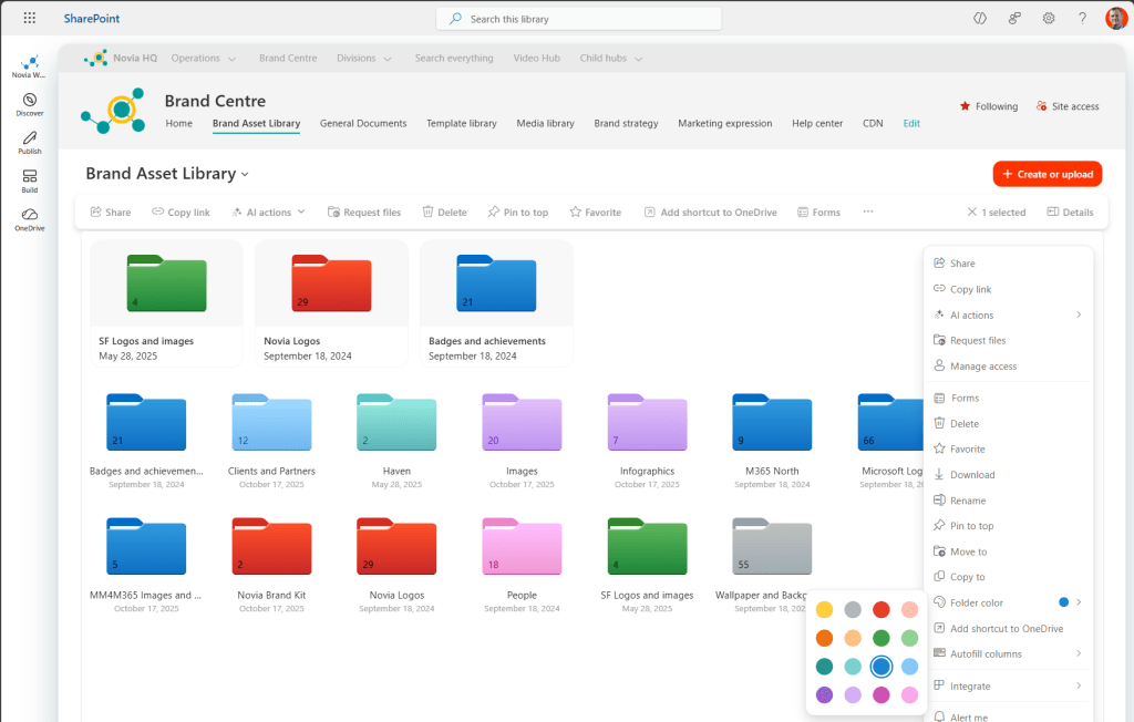 Modern SharePoint libraries may show “Folder colour”